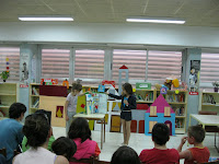 van representar una petita obra de teatre sobre el reciclatge, a la biblioteca